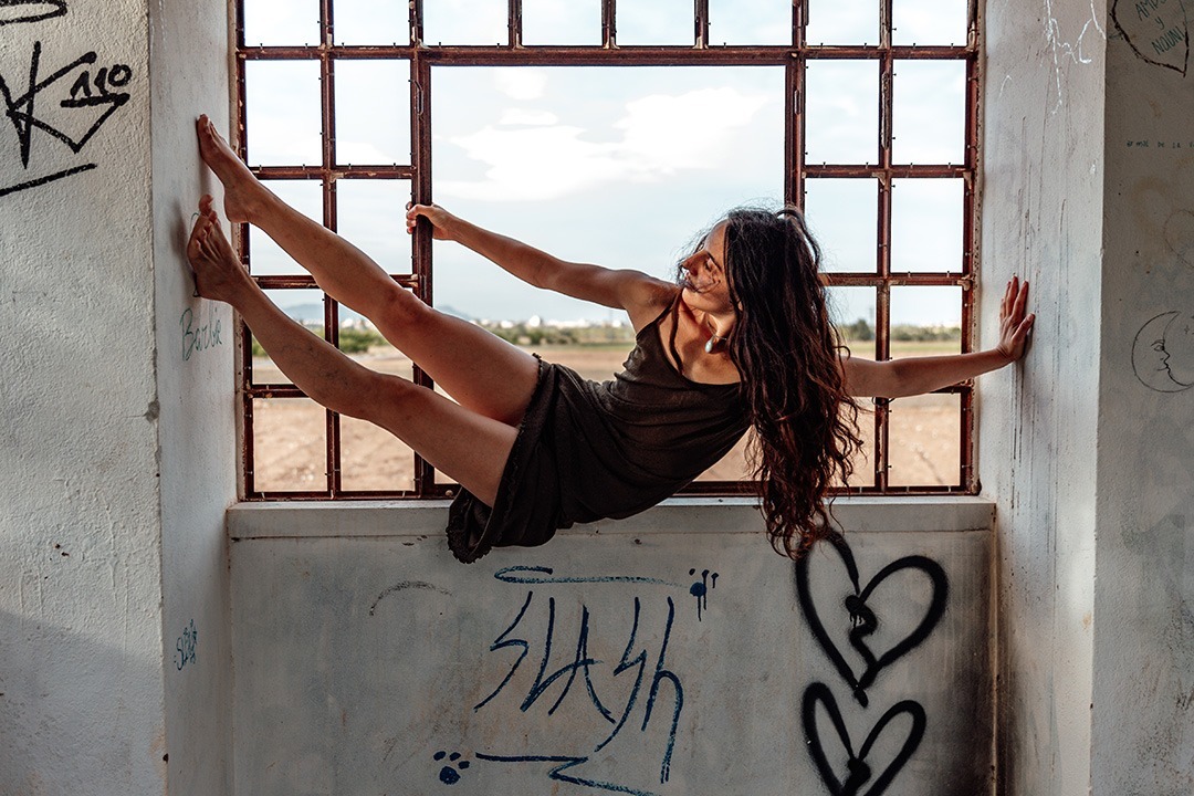 Die Gärten von Godella sind für Gala ein Ort ihrer Kindheit. Hier, in der Nähe von Valencia, ist sie aufgewachsen. Heute sind die Fenster des Pavillons rostig und karg, Gala verbindet mit diesem Treffpunkt: ihre Jugend. Hier liegt eine Geschichte in der Luft, ihre Geschichte. Hierhin wollte sie für das Shooting zurück, um sich still dem Tanz hinzugeben. Ohne Musik tanzt sie ihre Choreografie, hält immer wieder inne. Fühlt, wer sie hier einmal war – und wer sie heute ist, verbindet sich mit dem Ort und der Natur, die sie umgibt. Diese Emotion zwischen Nostalgie und purer Kraft,