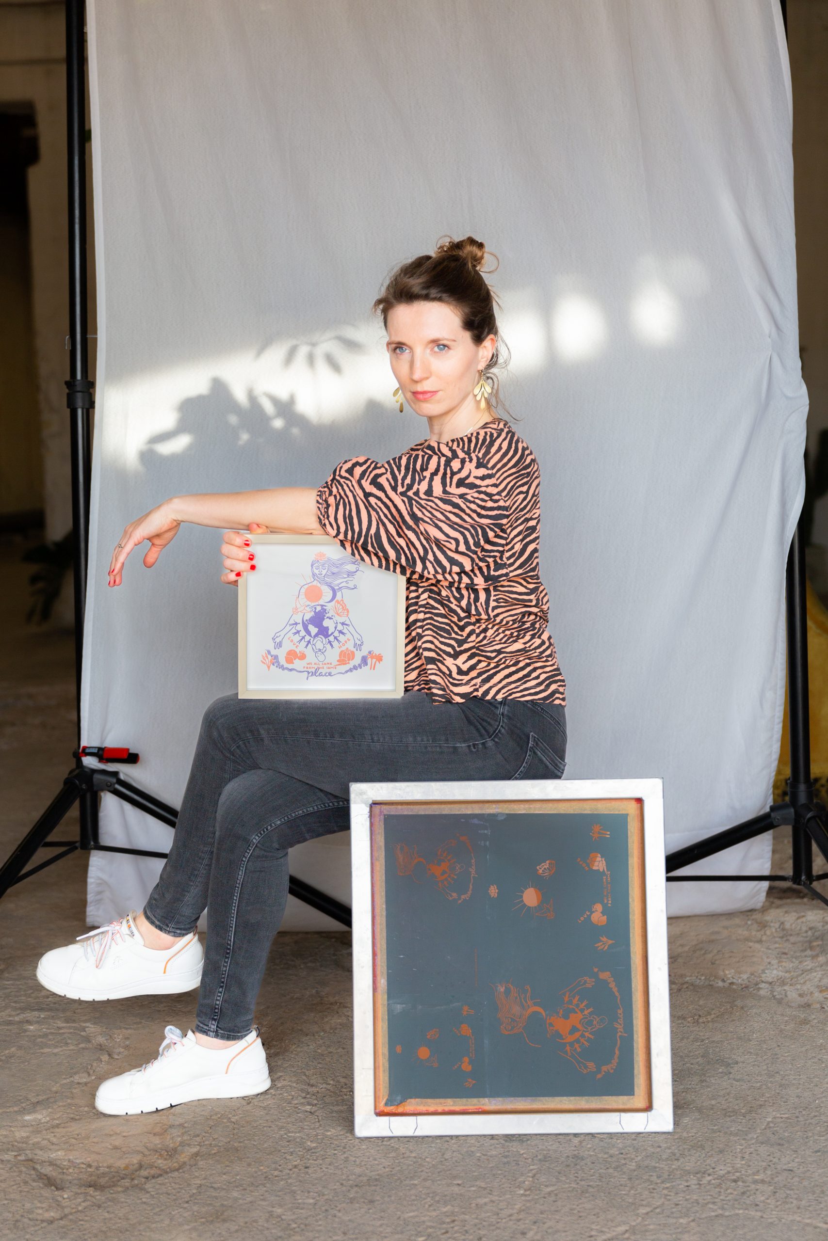 Als Illustratorin und Grafikdesignerin arbeitet Julia in einem shared office, das sich auf zwei ehemals verlassene Fabrikgebäude vor den Toren Valencias erstreckt. Beim ersten Treffen finden wir super tolle verschiedene Spots, die gute Lichtverhältnisse und passende Hintergründe bieten. Inspiriert von dem Ort und der Begegnung sprudeln die ersten Ideen und wir sind mittendrin in der Entwicklung des Konzepts und ihrer individuellen Bildsprache.